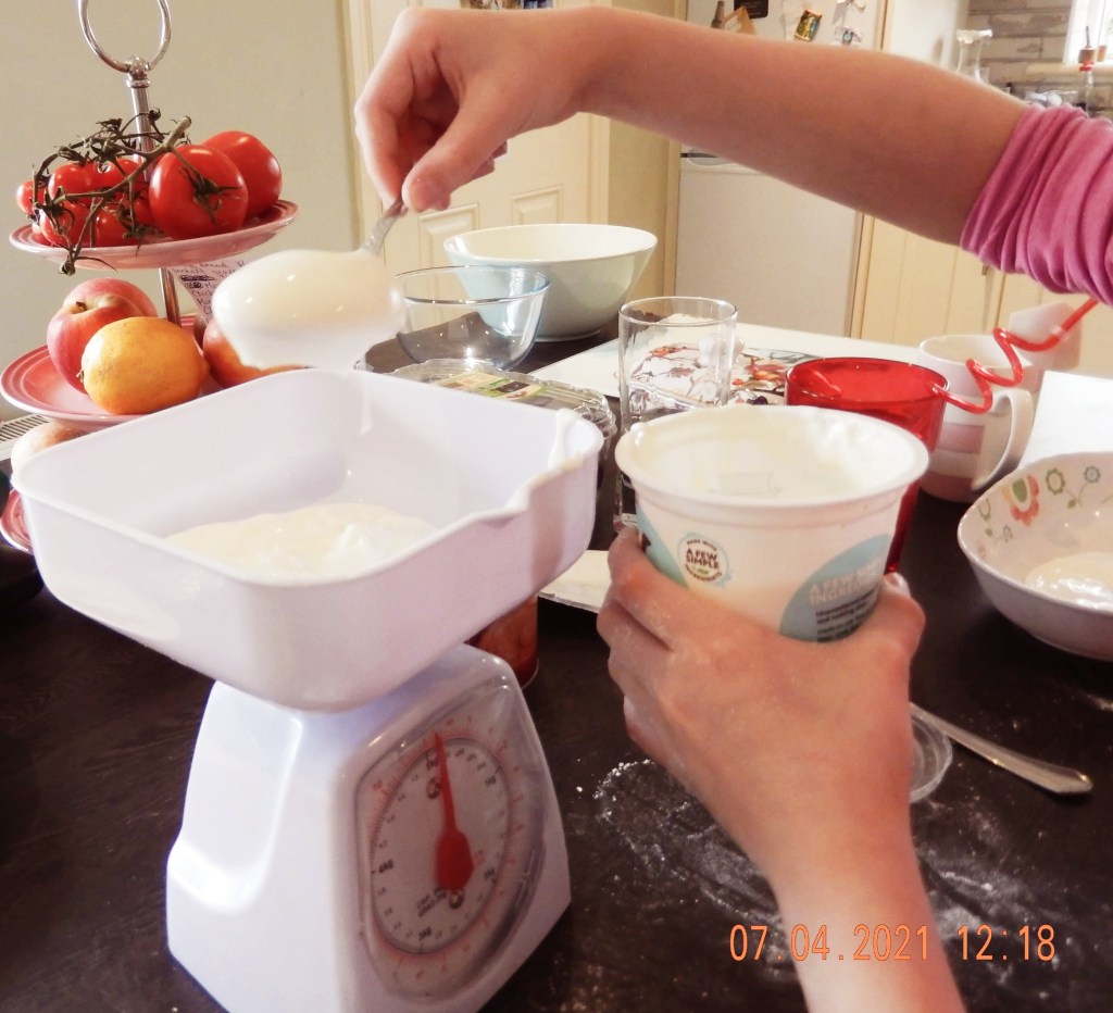 Red velvet Loaf Cake: Lots of weighing out to do and Little Miss Nine learned from the last two days exactly how to do that.