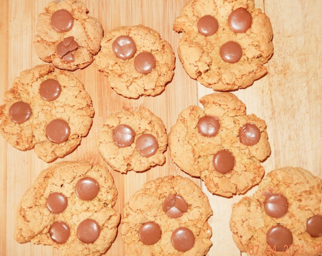 When the cookies came out of the oven, Little Miss Nine pressed buttons on top. Chocolate makes everything even more delicious. They were indeed the perfect cookies.