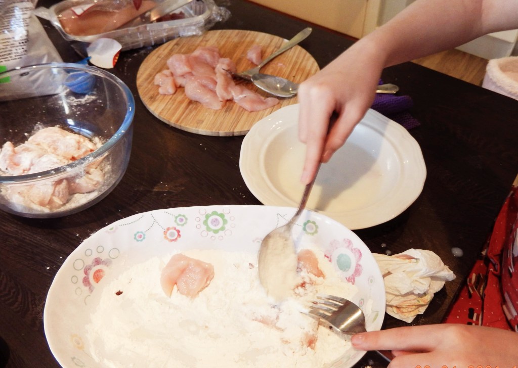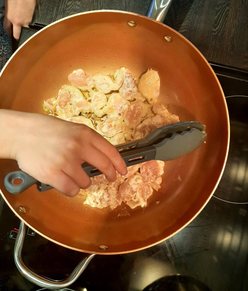 A fakeaway is best enjoyed in the evening time, and because Little Miss Nine is at her best in the mornings, we decided that it would be better if she made her chocolate fondants early in the day, and prepare all her ingredients for the honey chilli chicken. That’s what she did and it all worked out perfectly. The preparation is more than half the work for this fakeaway meal.