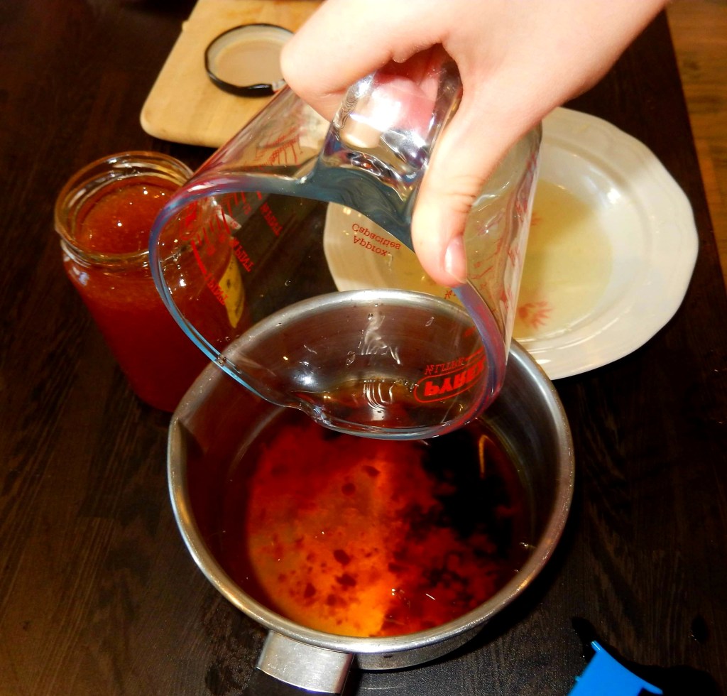 The glaze was very straightforward to prepare. Whisk together sweet chilli sauce, light soy sauce, water, lemon juice and honey.