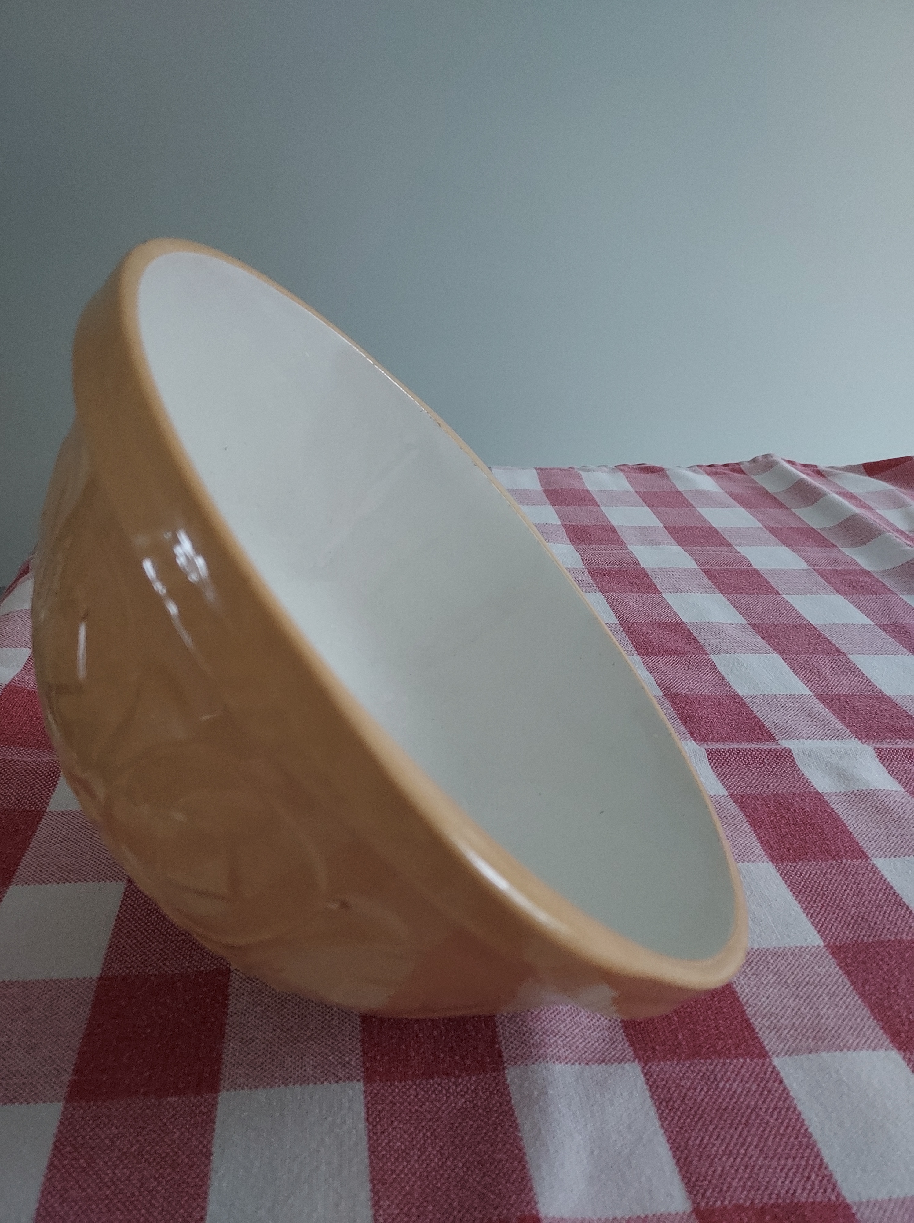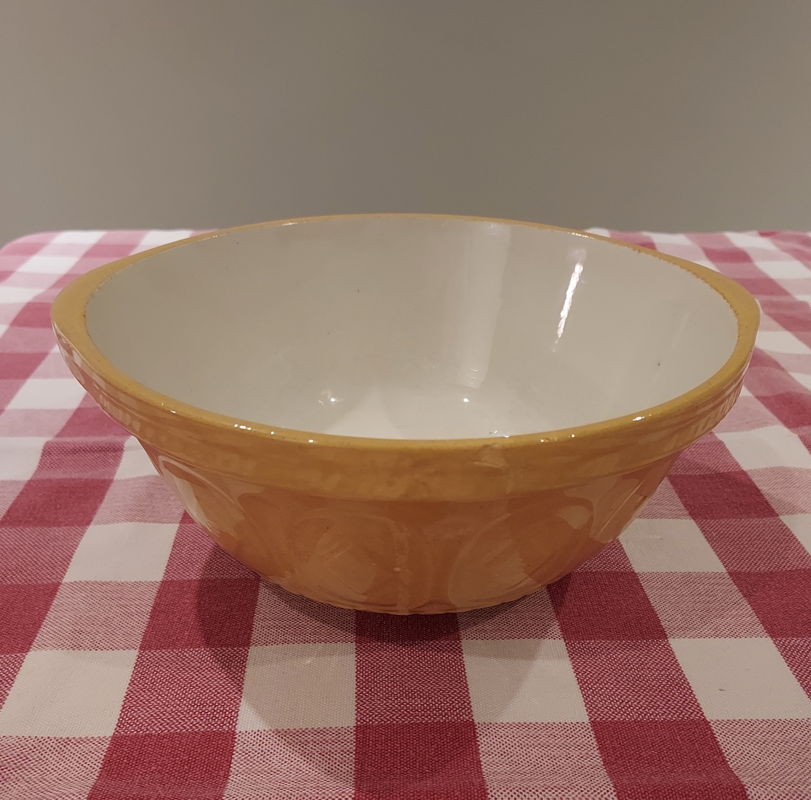 I have Mrs Curly’s old mixing bowl. Ha! Yes, really hers. She left it to me as a going away present when she left town; with a note inside.