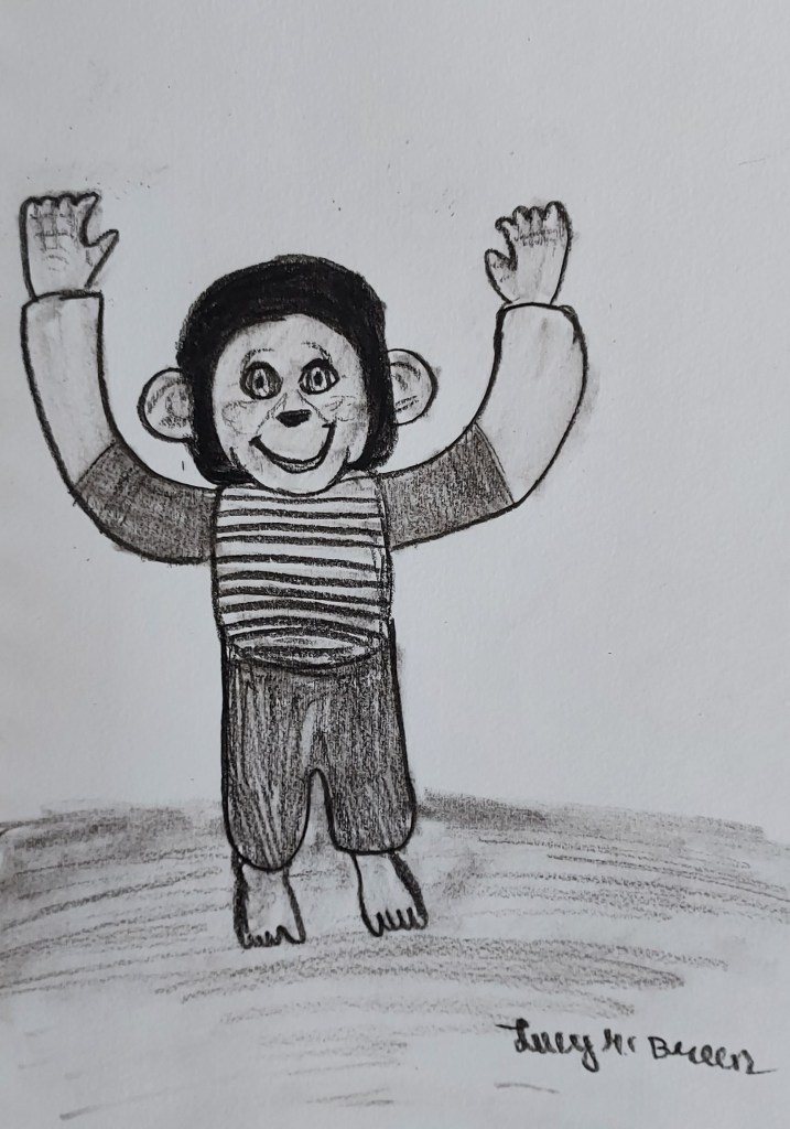 Mam sewed up poor Jacko with her darning needle and industrial thread (she used to sew shoes for Earl’s shoe factory). But Jacko was never the same after. He deteriorated down through the years and eventually went to Monkey Heaven!