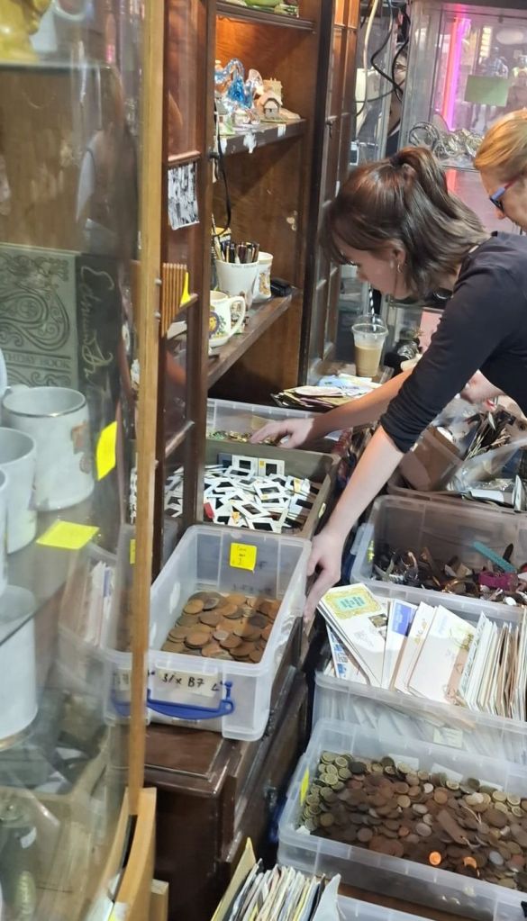 My 13-year-old daughter and I love rummaging in thrift shops and when we came across one in the market we were delighted with ourselves. The first thing I came across was a box of old postcards and used stamps. To say I got excited was an understatement. I pulled out the box, laid down my iced coffee, and got stuck in.