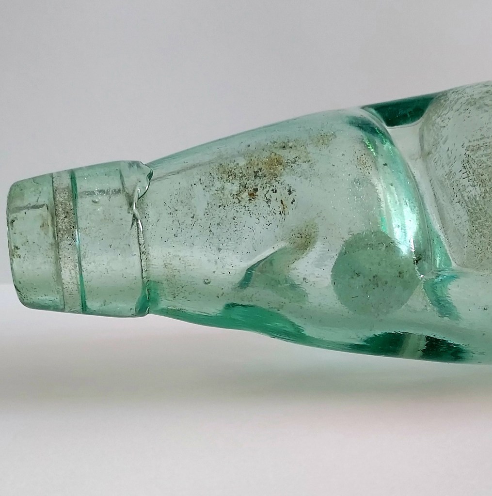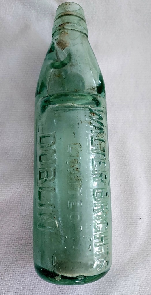 The next bottle in my dad’s collection is this Codd neck bottle. This particular one, embossed Walter Brights LTD Dublin, is vintage from the 1900’s and is a rare find.