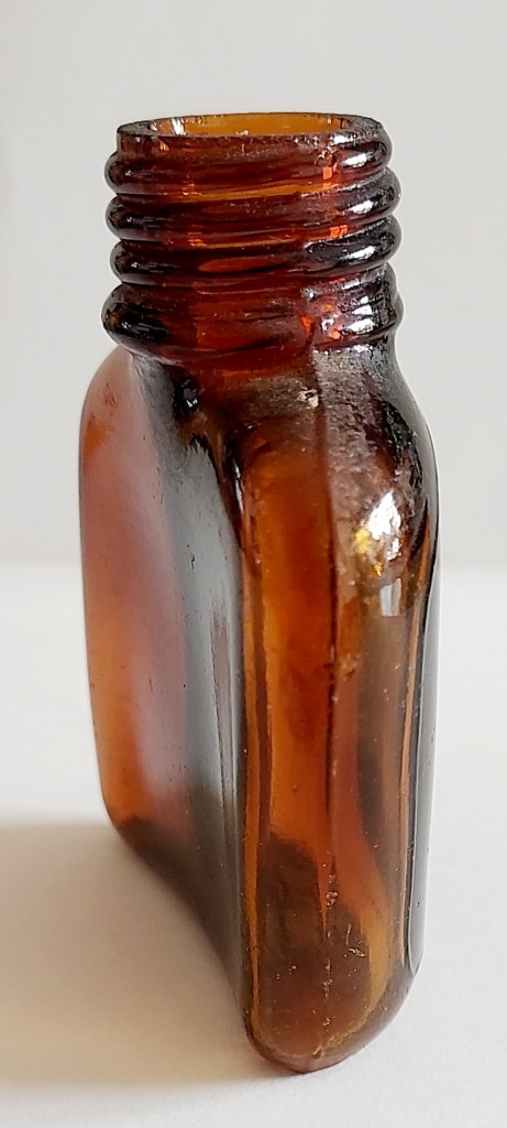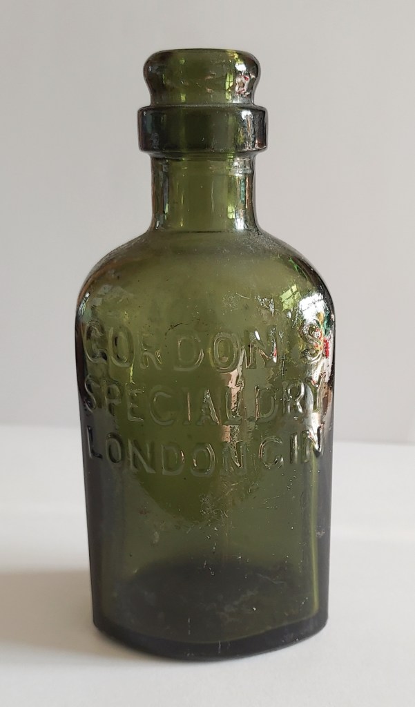 Victorian Ink BottleVintage Glass Ink Bottles A Glass Stopper2oz Vintage Bovril JarA Poison Bottle“NOT TO BE TAKEN” Amber Medicine BottleAmber Curved BottleI’m not sure what the amber curved bottle on the right was used for. Gordon’s Special Dry London Gin