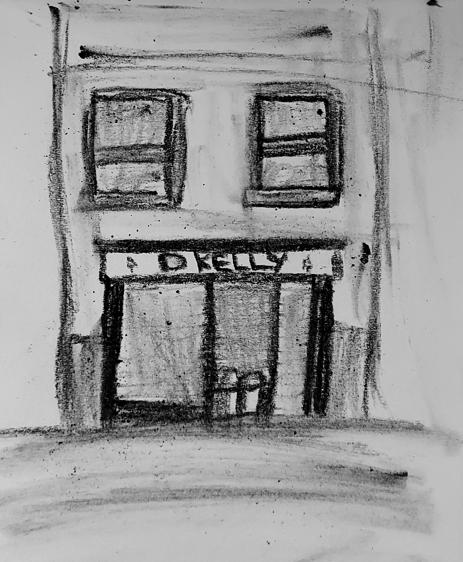 The post office was a dark pokey little place tucked into the left-hand corner of Tom Reilly’s grocery shop. It had a high wooden panelled counter, completely different to what it is now. I didn’t like going into the post office because we had to queue sometimes.